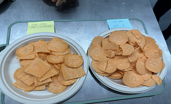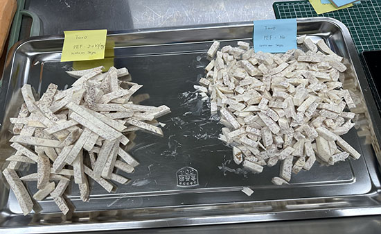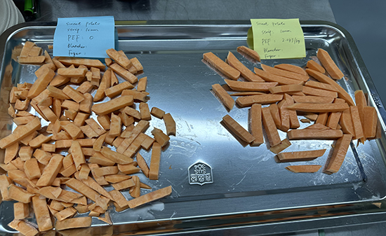 2023年8月10日,某菲律賓著名薯片生產(chǎn)企業(yè)一行6人來到我司北京實(shí)驗(yàn)室進(jìn)行相關(guān)產(chǎn)品的PEF(高壓脈沖電場(chǎng))測(cè)試。我們對(duì)馬鈴薯、紅薯、紫薯、芋頭、蓮藕和胡蘿卜等產(chǎn)品進(jìn)行不同比能的PEF處理,處理后進(jìn)行切割及油炸相關(guān)工藝。